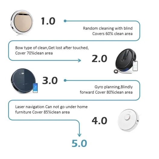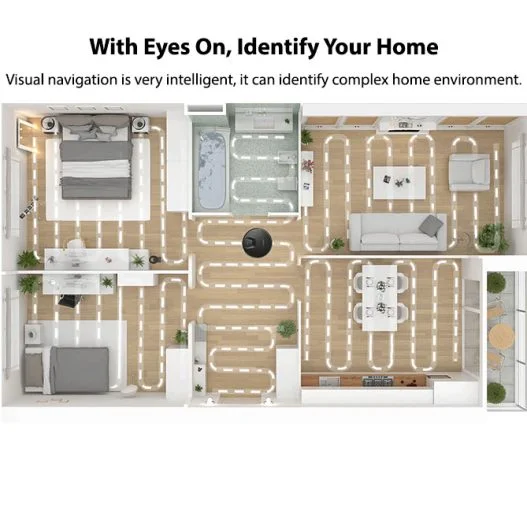 Visual navigation is very intelligent, it can identify complex home environment. Front camera with Image positioning, more accuracy. 8.1 cm Shallow body, free to go anywhere. The camera works stably, quite durable.